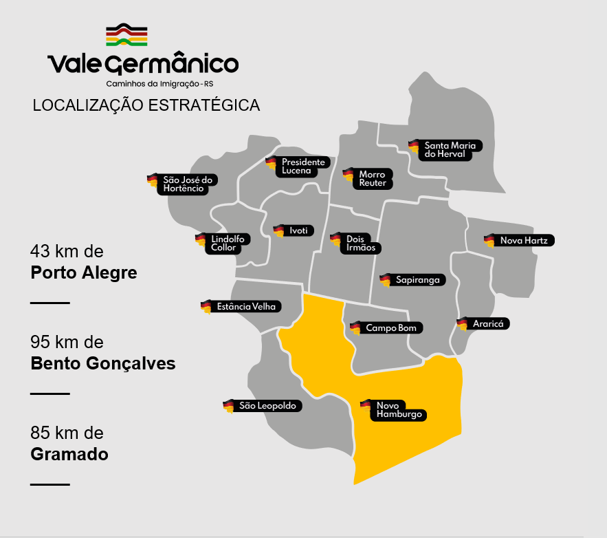 Novo Hamburgo integra a região metropolitana de Porto Alegre e a região turística Vale Germânico: o Berço da Imigração Alemã no Brasil. A história da cidade está diretamente ligada a imigração, em uma mescla de povos, costumes e culturas.