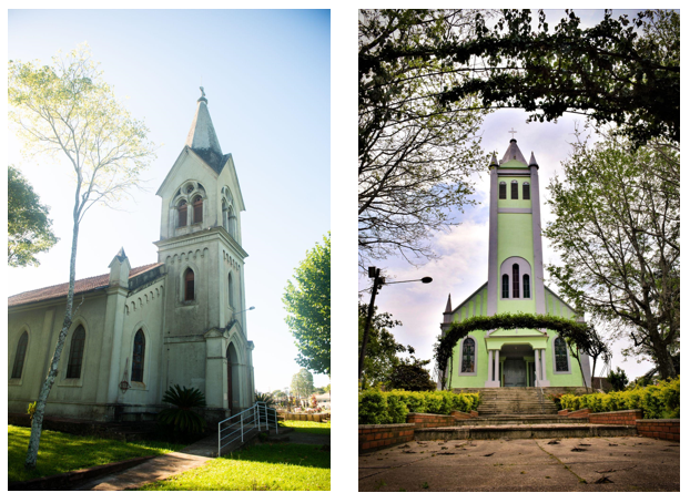 A forte religiosidade dos imigrantes que aqui chegaram deixou um legado expressivo de igrejas e templos repletos de arte sacra e vitrais.